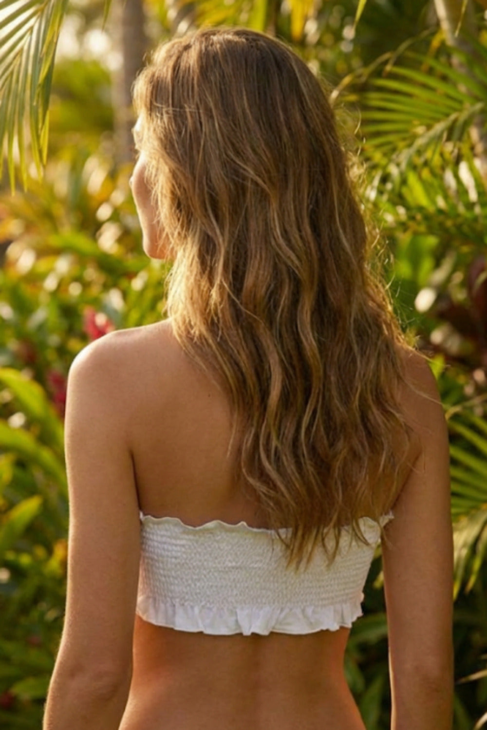 Made from 94% viscose and 06% elastane, the model offers a soft touch, lightness, and just the right amount of elasticity, ensuring comfort and excellent wearability. The shirring at the back provides a perfect fit to the body and freedom of movement, enhancing the silhouette naturally.